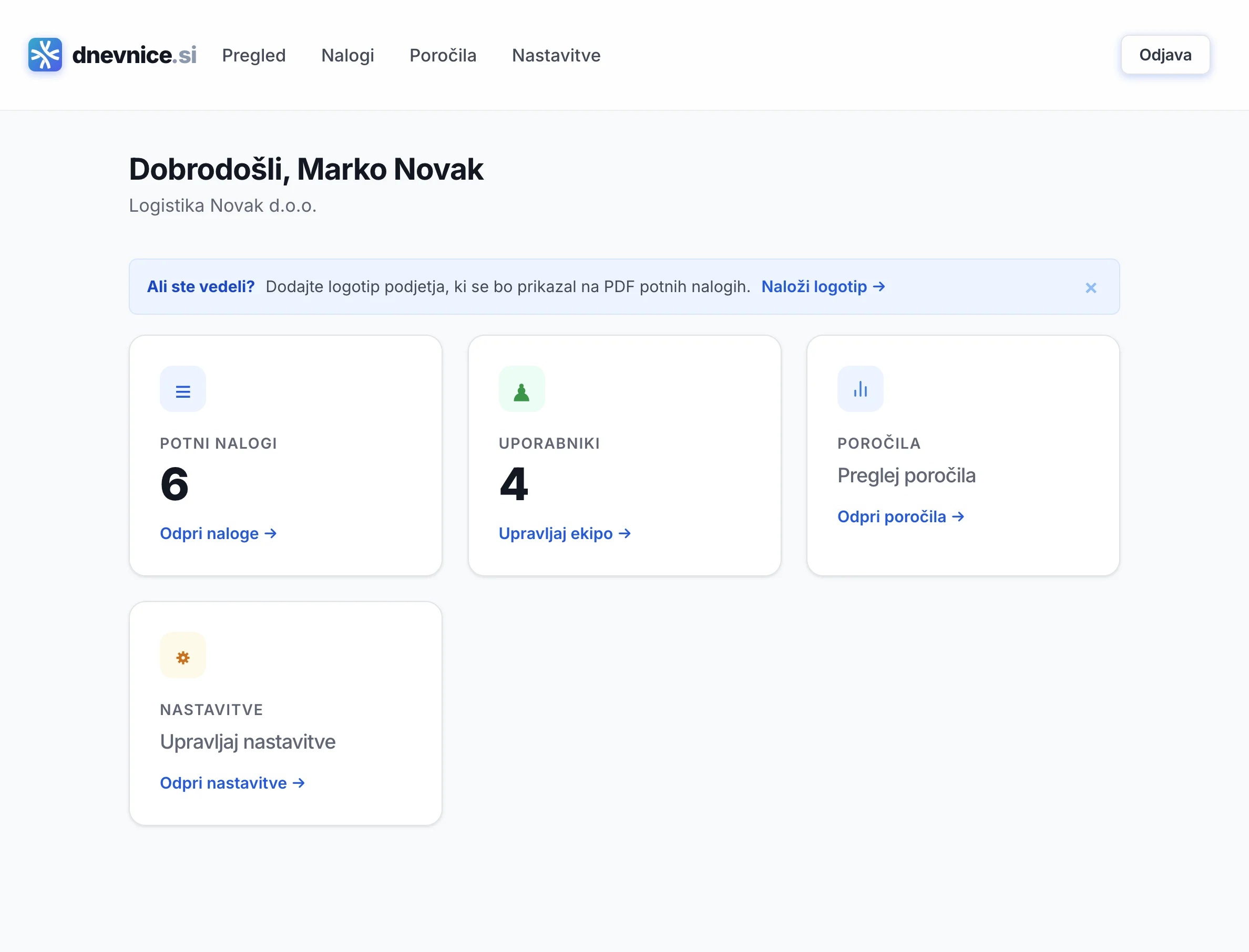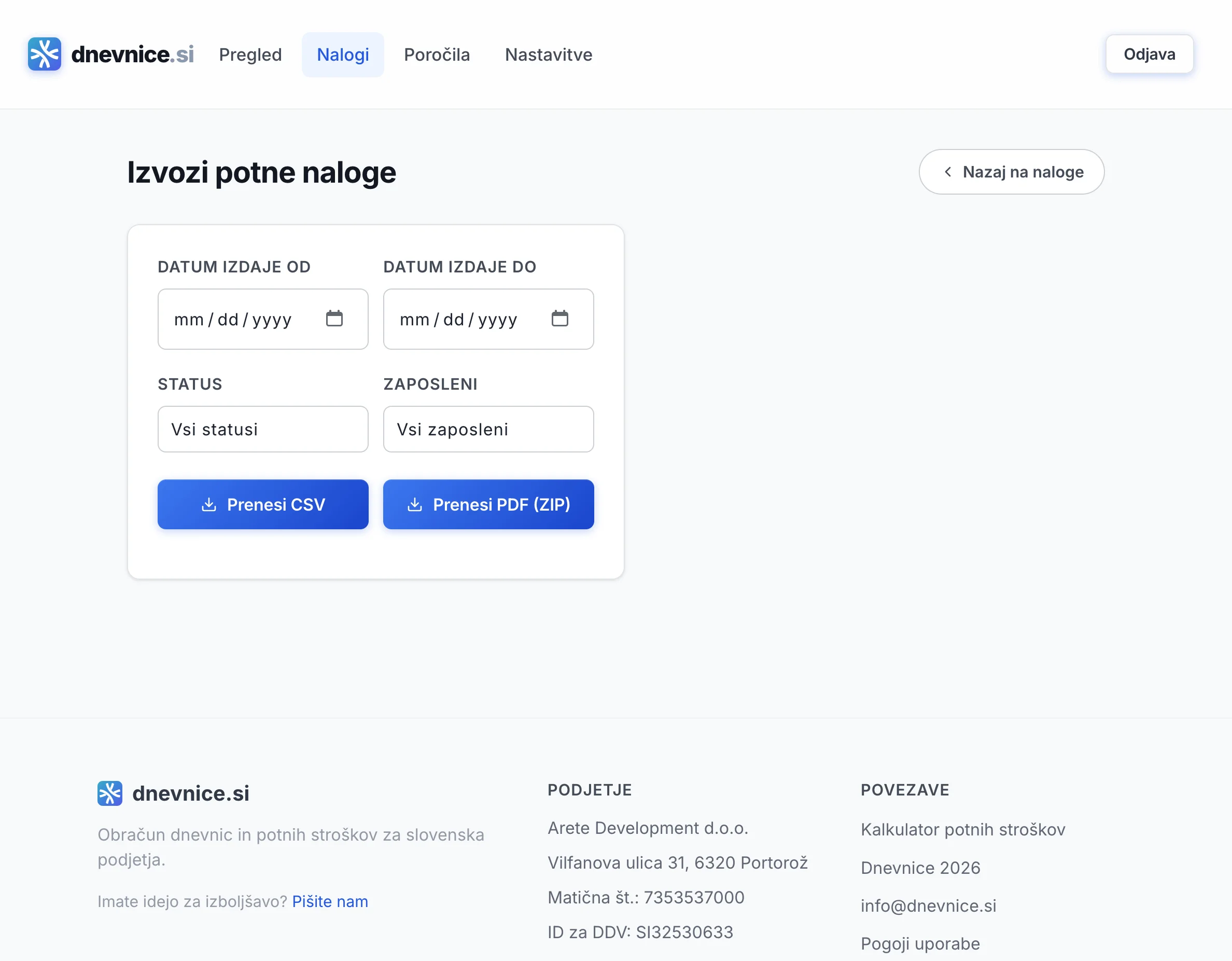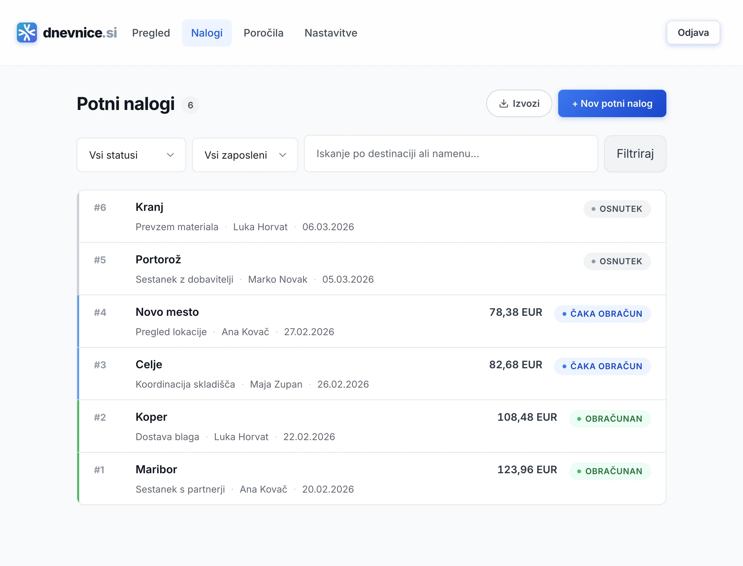 Od ustvarjanja potnih nalogov do obračuna potnih stroškov in izvoza PDF — vse na enem mestu.