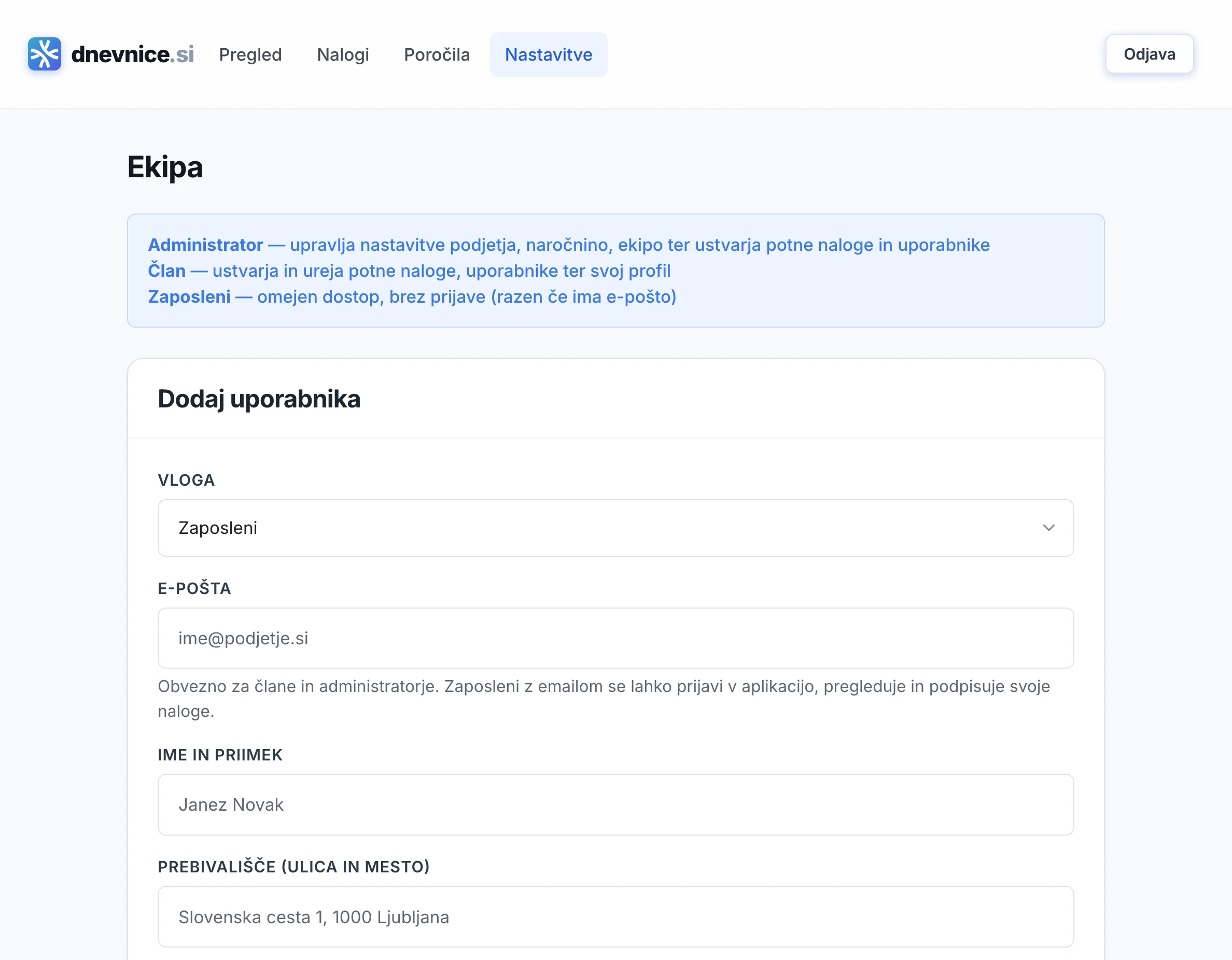 Da. V enem podjetju lahko deluje več uporabnikov z različnimi pravicami (administrator in zaposleni). Uporabnike dodajte neposredno v nastavitvah.